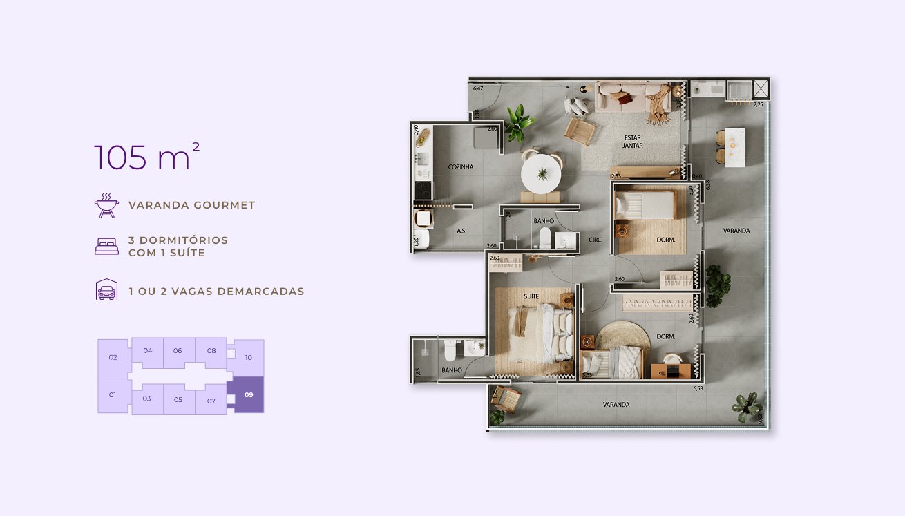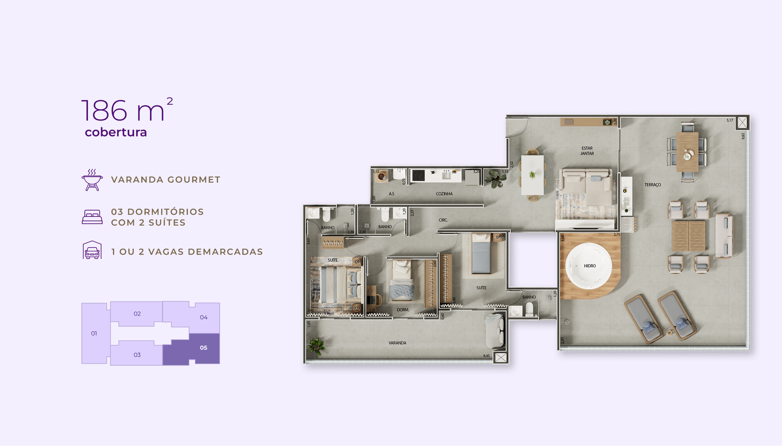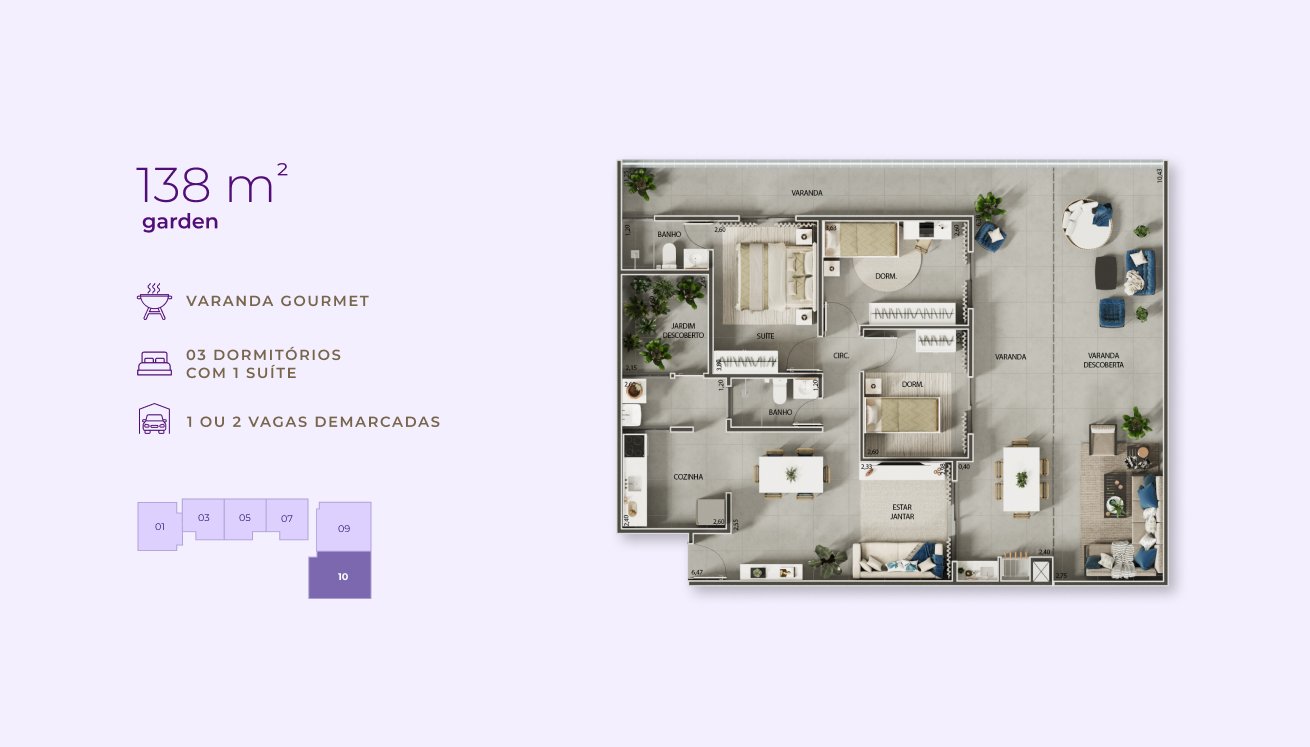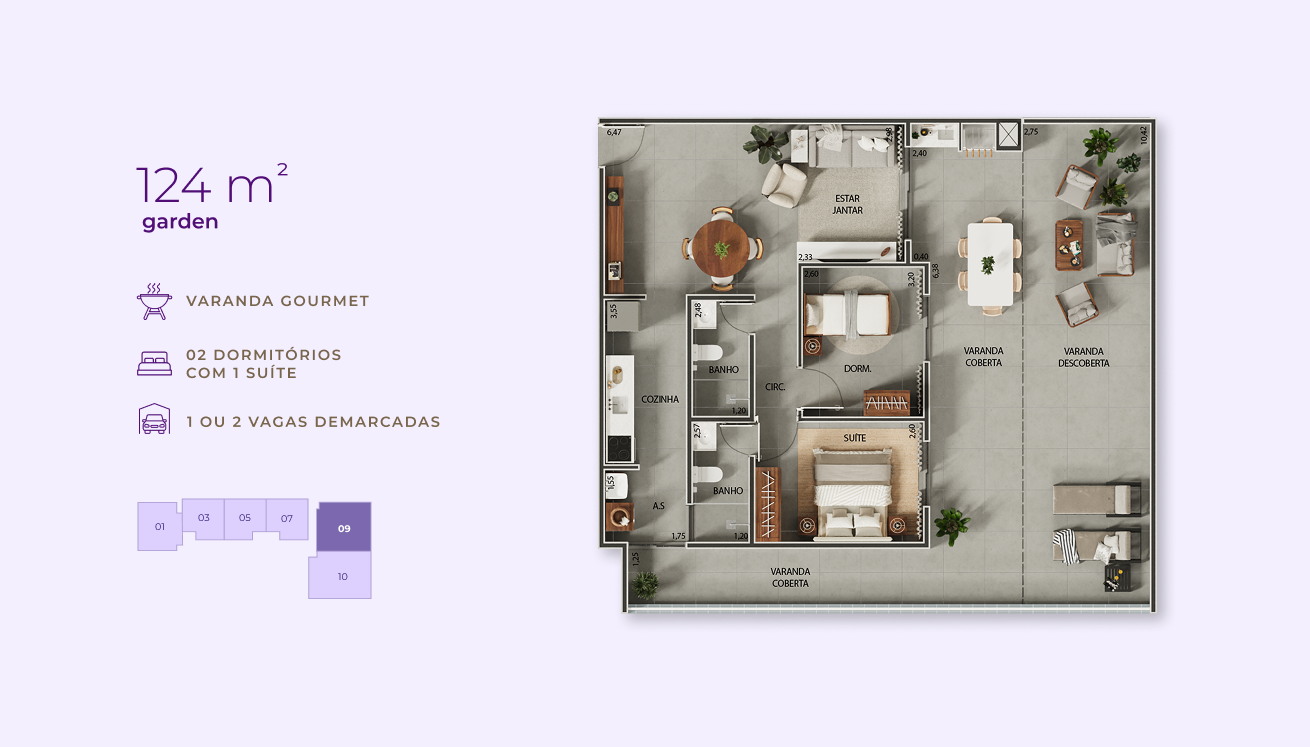 Total de unidades: 61 Opções de Gardens e Coberturas